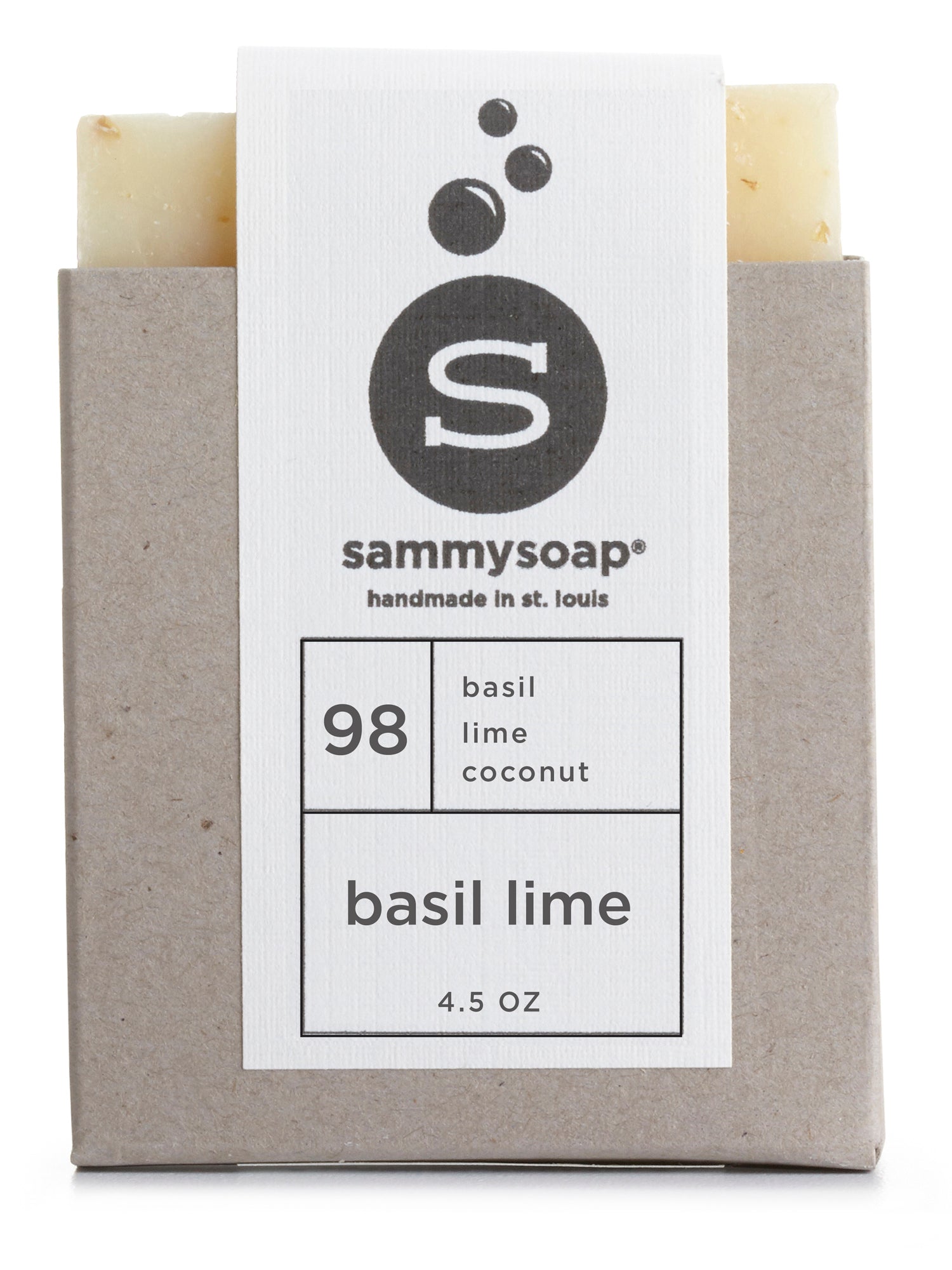 You'll love this bar's strong, sweet basil scent paired with lime and coconut. Invigorating, uplifting, and deeply skin conditioning, sammysoap basil lime soap is fun to use and lathers like crazy. Excellent for all skin types.