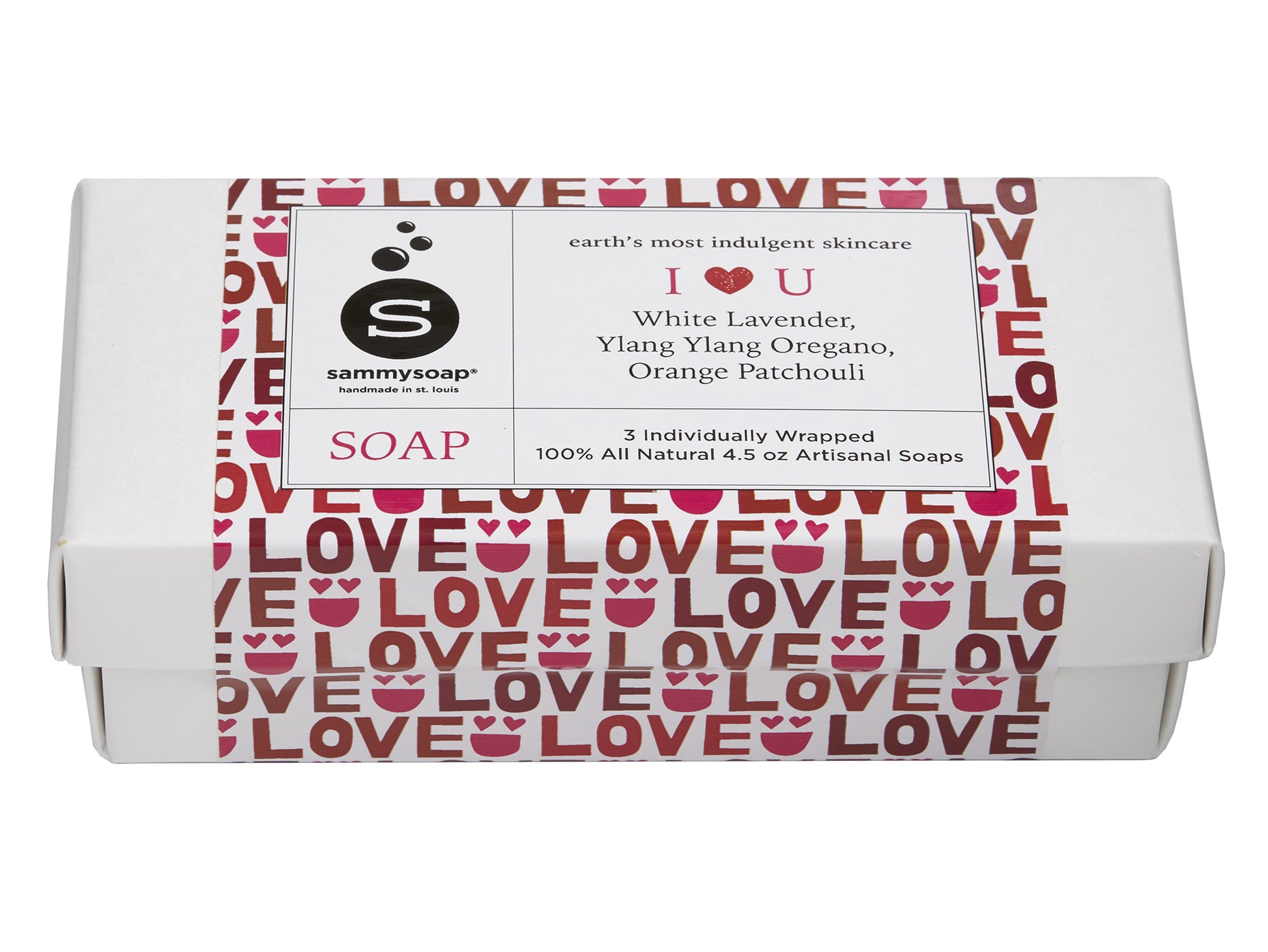 Three best selling, ultra moisturizing individually wrapped 100% All Natural 4.5 oz artisanal soaps in a fun "I ❤️ U" gift box. Includes: